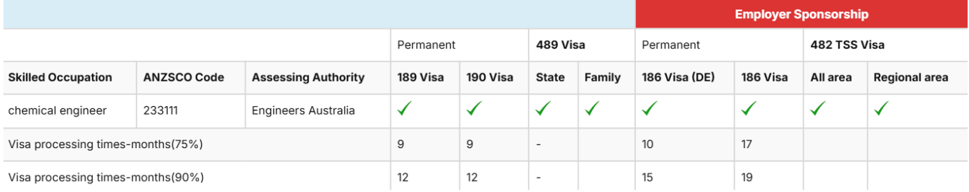 As Chemical Engineer is listed on the Medium and Long-term Strategic Skills List (MLTSSL), it is considered a high-demand occupation in Australia. This allows eligible candidates to apply through the General Skilled Migration (GSM) program, which is a points-based immigration pathway.